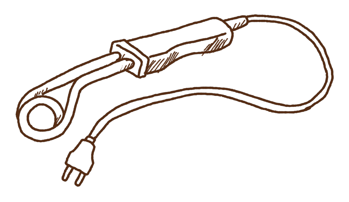 | コイル式瞬間湯沸かし器 | シリアで150円ほどで購入。ハンダ付けがあまく、コードも細くて心もとなかったが最後まで活躍!東急ハンズでも売っているが、ものは良いが約7000円と高過ぎる・・・。 |