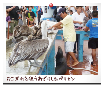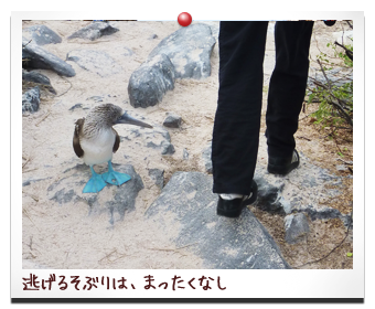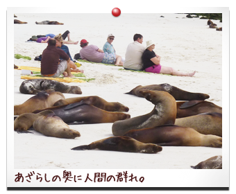 あこがれのガラパゴス。 目にしたのは、まったく人間を恐れない動物たち。 (というか、眼中にない)と、人間たちの微妙な関係。 人間を天敵と認識していないため どやどや観光客が訪れても意に介せずお昼寝。 遊歩道でタマゴを抱くアオアシカツオドリ。 漁であがったお魚のおこぼれをもらおうと港に集まる あざらしやペリカンたち。 観光客が増大し、それにつれ島民も増大 自然と観光業の両立。動物たちと人間の共存。 微妙な関係の中、生活は続いている。 |