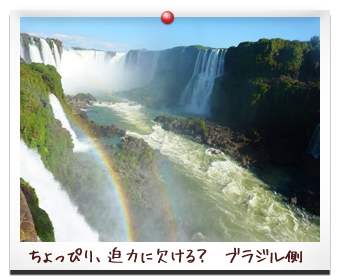 アルゼンチン側、ブラジル側、両方からイグアスを ながめることができた。 滝のすぐ近くまで通る遊歩道を有するアルゼンチン側。 最大水量の滝壺から、ちょっと遠いブラジル側。