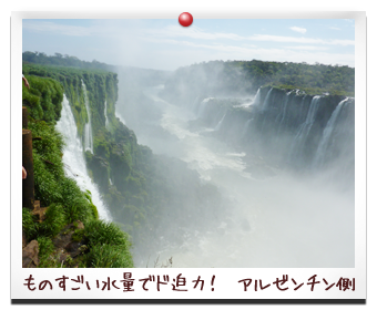 アルゼンチン側ではボートで滝壺に突っ込むツアーが あったり、蝶の大群に出くわしたりと、 やっぱりアルゼンチン側のほうが、人気は高い様子。 |