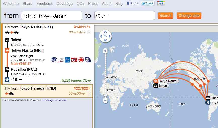 帰国後に、ここを知ってたら便利かも!!と思ったサイト 目的地を入力すると、各種移動方法、航空便などが表示される。 |