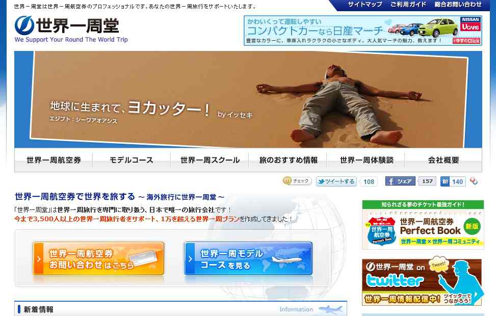 うちは、ここで世界一周チケットの発券をおねがいしました。 世界一周のセミナーにも参加させてもらったり ルート作りの参考にもさせてもらいました。 |
