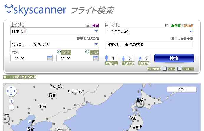 日本発のみならず、世界中の空港からの発着便を調べることができ 予約サイトまで簡単に飛ぶことができる。